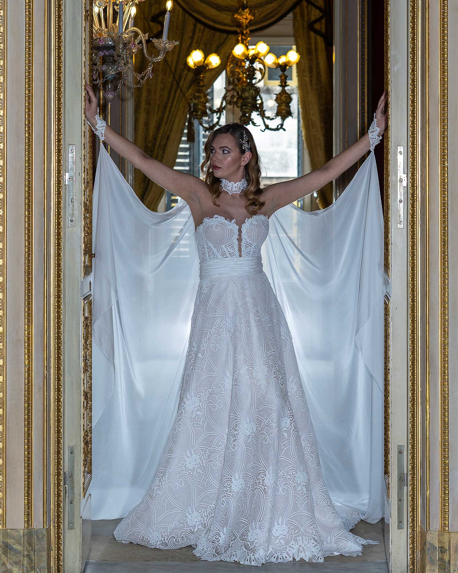 Versatilità e raffinatezza contemporanea, tra luce di cristalli, leggerezza d’organza e fascino trasformabile mediterraneo.